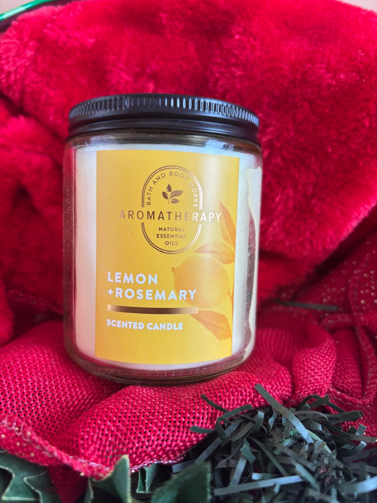 B&B Single Wick Candle – Lemon Rosemary; a fresh, energizing scent to uplift, refresh, and invigorate any space.