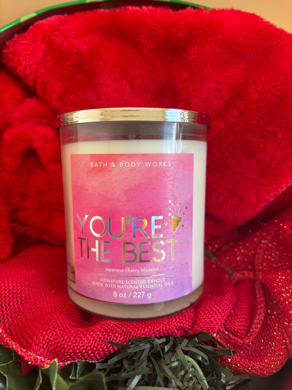 B&B Single Wick Candle – You’re the Best, Japanese Cherry Blossom; a floral-scented candle with a clean burn, perfect for relaxation, ambiance, or gifting.