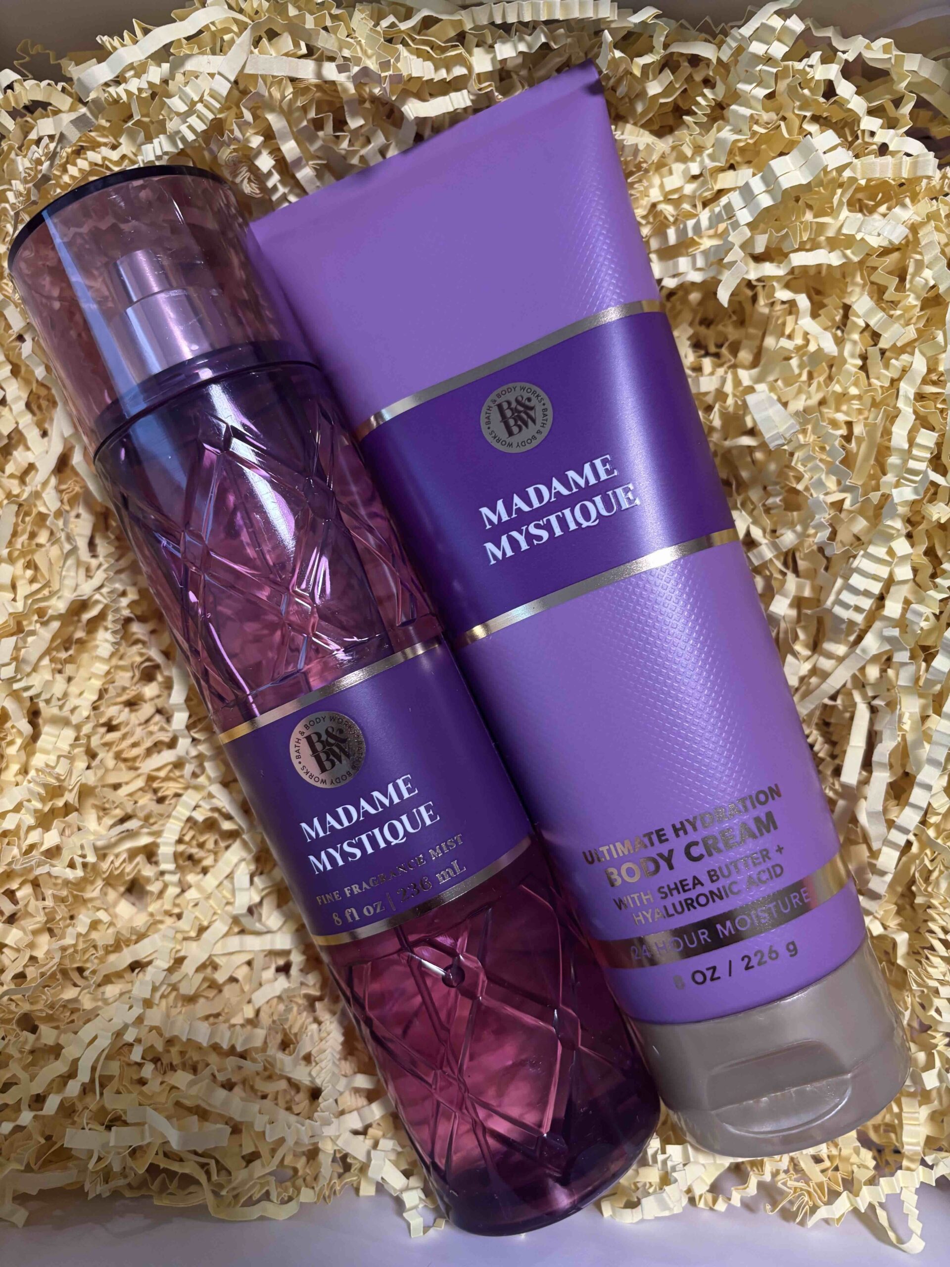 The B&B Women Shop Collection: 2pc Set – Madame Mystique is a luxurious fragrance duo designed for women who love elegance and sophistication. This set includes a captivating body mist and a matching lotion that together provide a long-lasting, alluring scent while nourishing the skin. Customers can apply the lotion first and then layer the mist for a deeper, more enduring fragrance, perfect for special occasions, daily wear, or evening outings. Its enchanting aroma enhances confidence and leaves a memorable impression wherever you go. The set is travel-friendly, making it ideal for home use or taking along on trips. Created specifically for women, this 2pc set blends elegance, hydration, and a mesmerizing scent in one beautiful package.