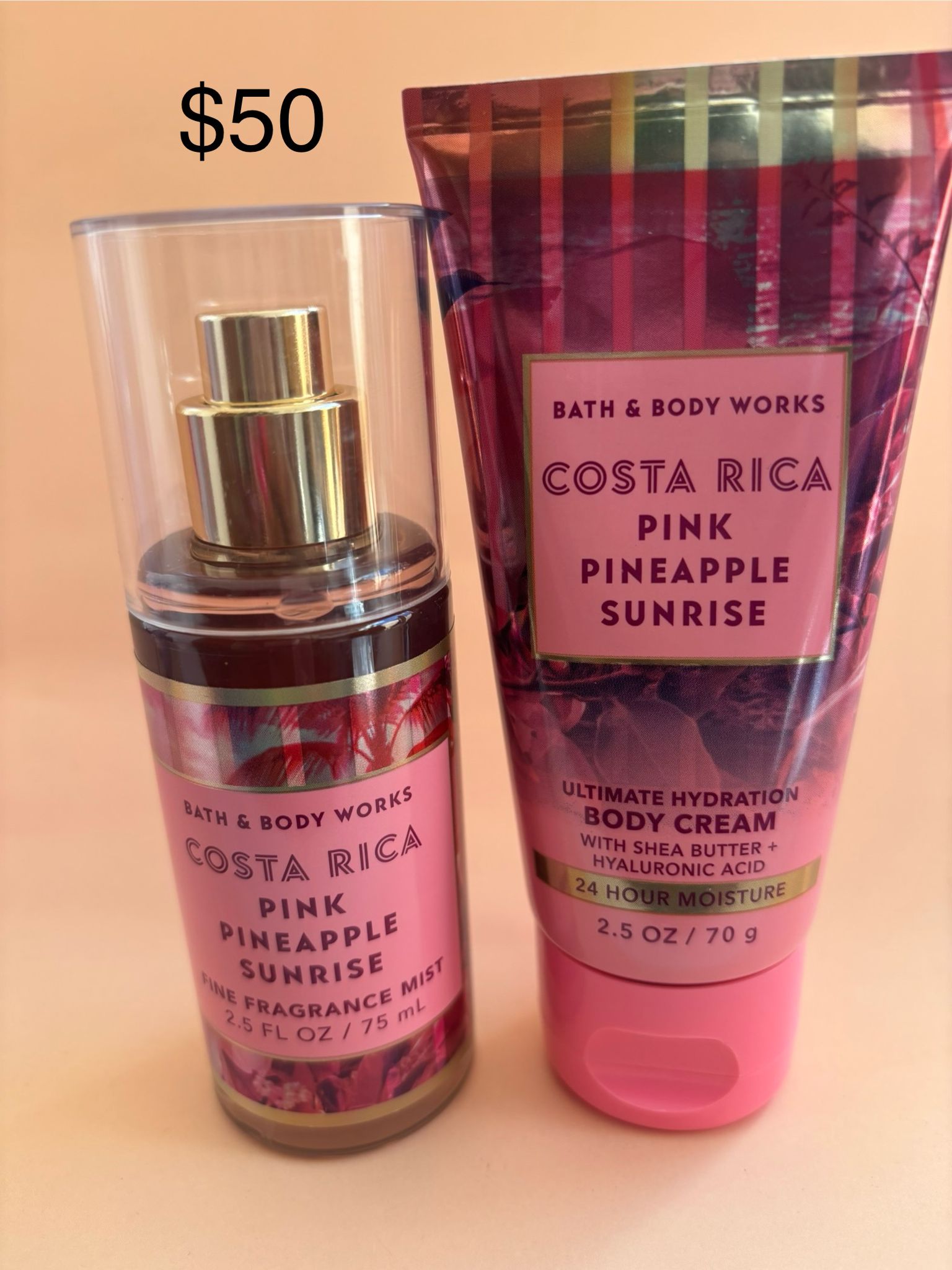 The Costa Rica Pink Pineapple Sunrise Women Mini 2pc Set is a vibrant, tropical-inspired fragrance duo that brings sunshine and freshness to your daily routine. This set includes a mini body mist and lotion, giving you a perfect balance of hydration and long-lasting fragrance. Its fruity and playful scent makes it ideal for both casual daytime wear and refreshing touch-ups throughout the day. With its compact size, you can easily carry it in your handbag, gym bag, or luggage, making it travel-friendly and perfect for on-the-go moments. Customers love it as a self-care treat or a thoughtful gift for women who enjoy bright, uplifting fragrances. With this set, you can take the tropical vibes of Costa Rica with you anywhere you go.