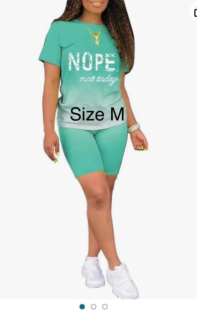 A stylish women’s 2-piece sports set (shirt and jogger bodycon shorts) in size M, ideal for workouts, casual outings, and everyday wear.