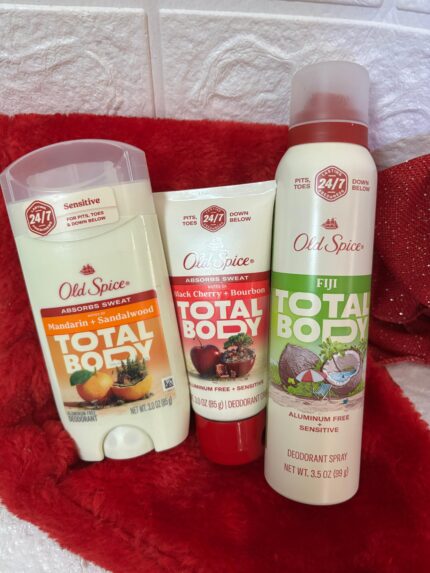 Old Spice Fiji Total Body Aluminum Sensitive Deodorant Spray, “Mandarin+Sandalwood deodorant & Black Cherry & Bourbon Deodorant Cream